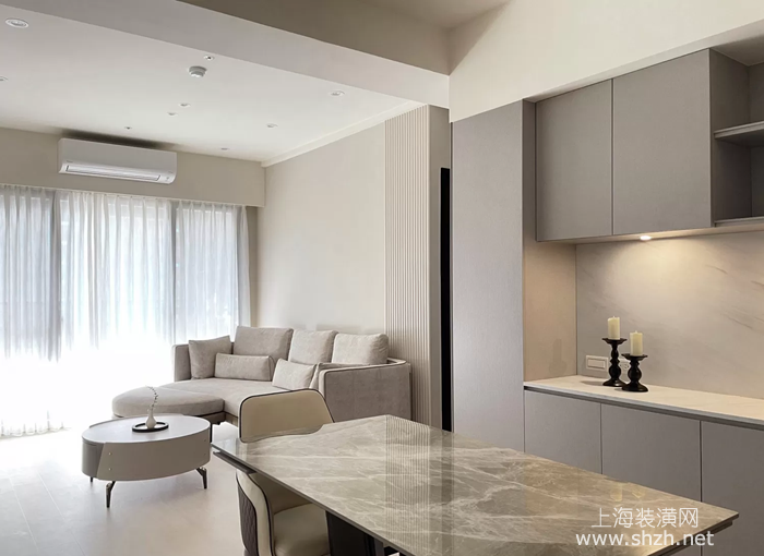 開放式布局:客廳與餐廳采用開放式設計,使用吧臺、矮墻或家具自然分區(qū),減少視覺阻隔。