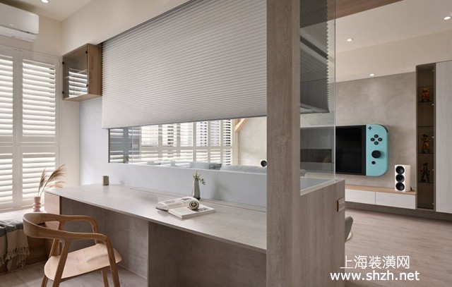 在客廳或書房安裝百葉簾,既能調(diào)節(jié)光線,又能保持通透感;白色、木色都是百搭選擇。