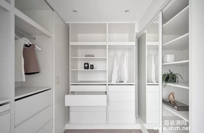 在內(nèi)部布局上,可結(jié)合衣物類型設(shè)置長衣區(qū)、短衣區(qū)、疊放區(qū)、抽屜區(qū)等,實現(xiàn)收納分類,讓衣物一目了然。