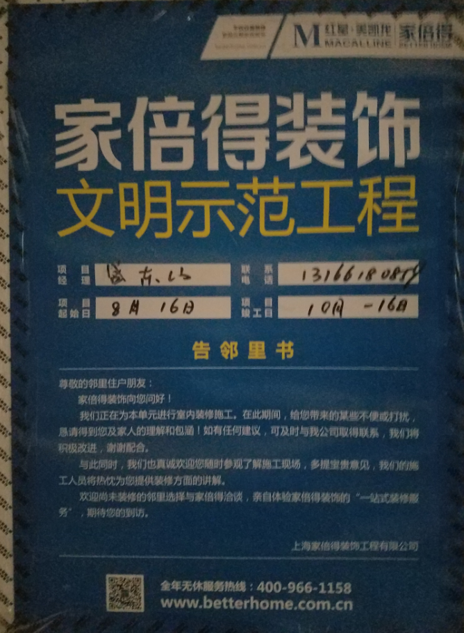 | 投訴類型 | 施工質量 | 投訴人 | 俞** | 被投訴單位 | 上海家倍得裝飾工程有限公司 |
