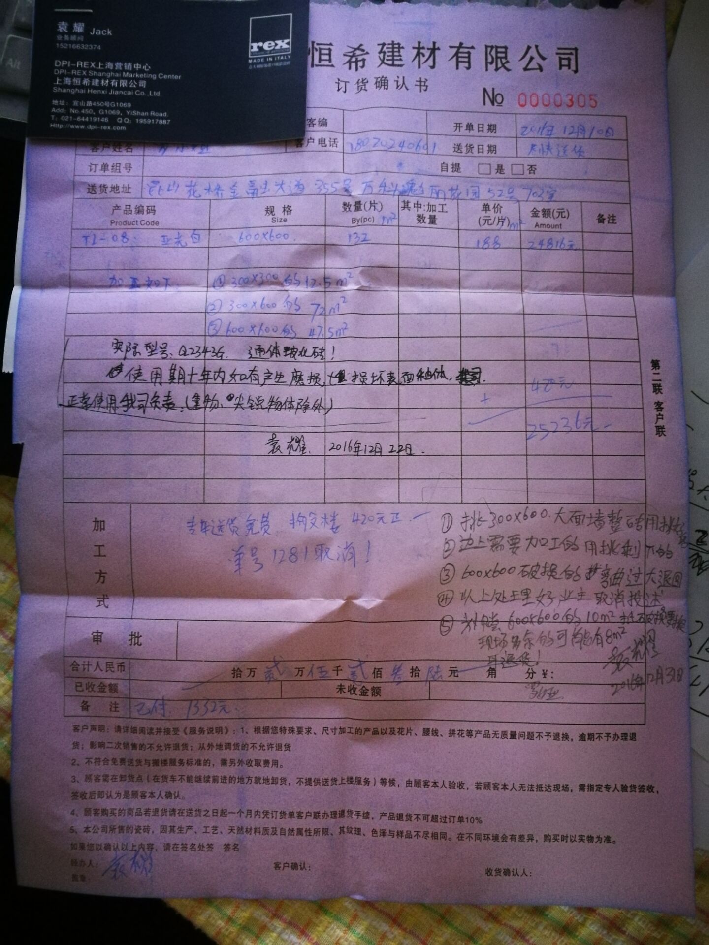 | 投訴類型 | 裝潢材料 | 投訴人 | 羅** | 被投訴單位 | 上海恒希建材有限公司 |