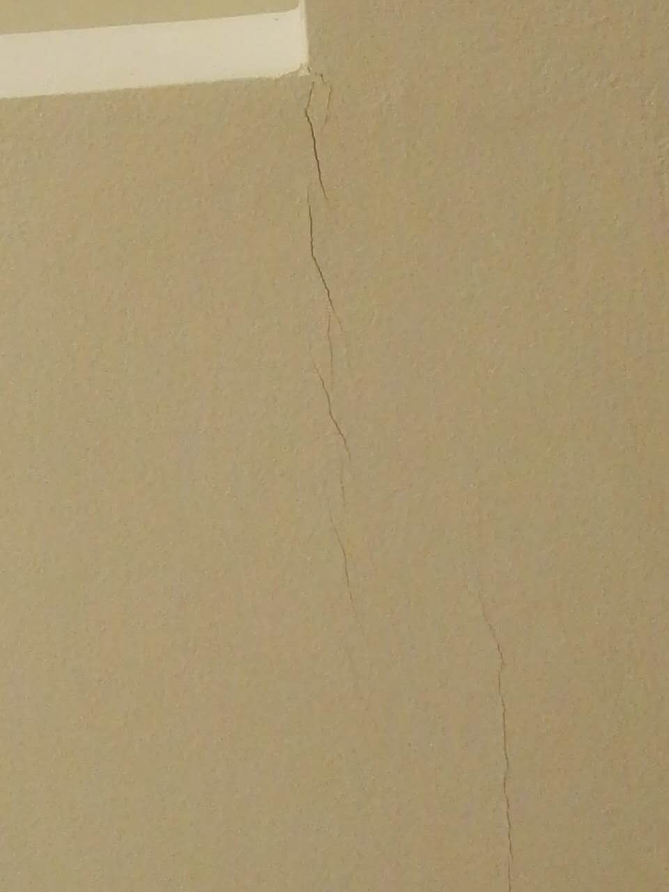 2017年5月上旬,業(yè)主發(fā)現(xiàn)不僅金螳螂公司原先修繕的部位問題并未得到徹底解決,修復的地方明顯隆起,部分修復處裂紋更加嚴重的出現(xiàn)了。與此同時,客廳、餐廳及房間墻體新出現(xiàn)大面積裂紋,裝修質(zhì)量問題進一步暴露。