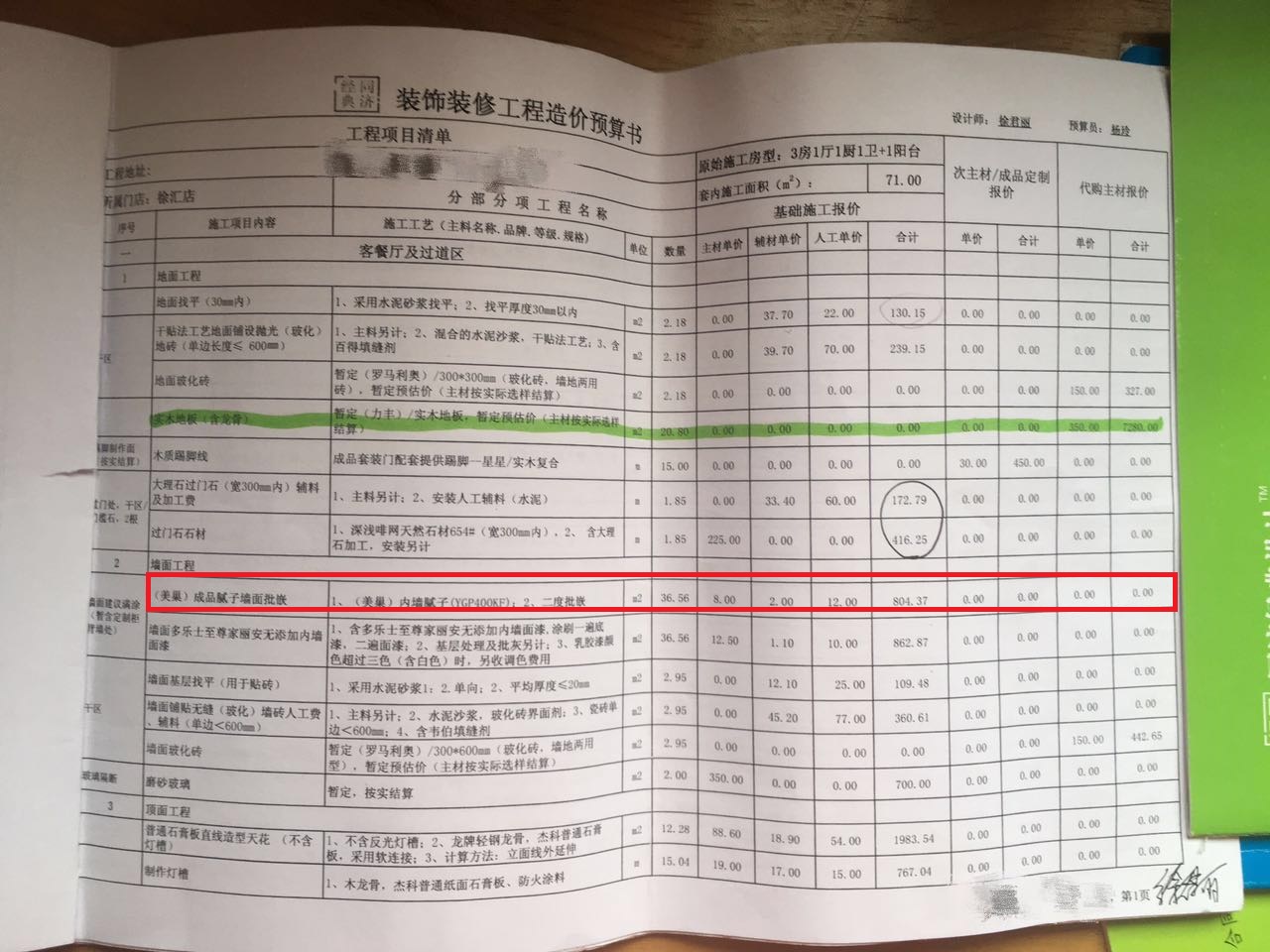 1.目前正在批膩子階段,造價書上用的是美巢成品膩子,但是實際確是自己調(diào)和的膩子,據(jù)油漆工說,他們公司都是自己調(diào)和的,從來不用成品膩子。材料入場時,因為沒看到成品膩子,向隊長詢問是否要查驗材料,隊長卻說不需要。詢問隊長為何不是成品膩子后,隊長起先說膩子做完之后就是成品膩子,后來又說自己調(diào)和的膩子質(zhì)量比成品的好,價格比成品的高。