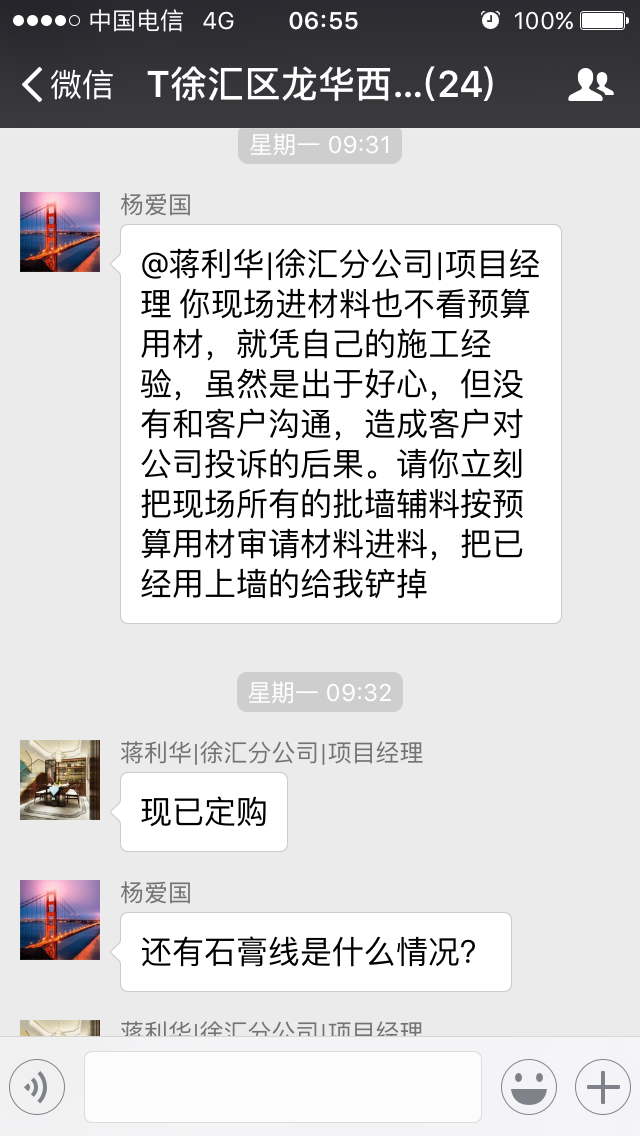 2.本來以為選擇一個比較大的裝修公司就可以放心了,但是接二連三的偷換主材,真是讓人心寒。偷換主材已經(jīng)不是第一次了,第一次是使用的石膏線和實際選擇的不同,因為外型就不同,還謊稱是一樣的。本來想不是很貴就不計較了,但是接二連三的發(fā)生不一致,導(dǎo)致現(xiàn)在對裝修公司失去信任,希望有第三方來監(jiān)管一下。
