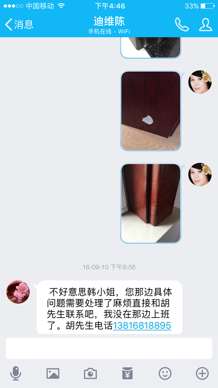 | 投訴類型 | 施工質(zhì)量 | 投訴人 | 韓** | 被投訴單位 | 迪維建筑咨詢(上海)有限公司 |