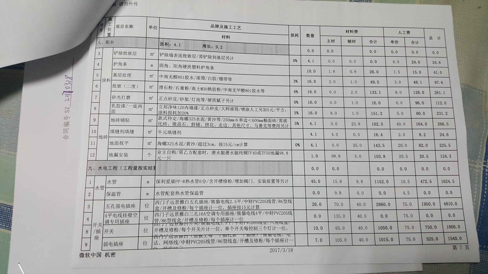 合同簽定線管為中財pvc205,實際上擅自更改為公元和愛康兩種,瓷磚簽的寶力瓷磚,實際上混有其他品牌瓷磚。