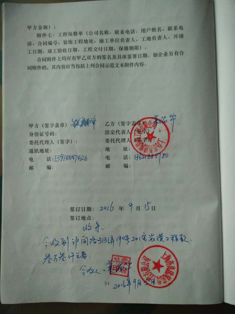| 裝修面積 | 110m2 | 投訴人手機 | 1891700**** | 被投訴人手機 | 1862161**** |