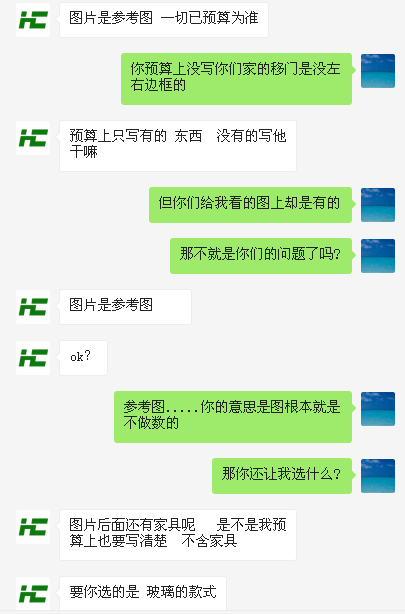 已解決,最終匯程空間設(shè)計(jì)在12月3日裝好移門的邊封匯程空間設(shè)計(jì)被投訴后的態(tài)度只能算是一般。如果能夠再次選擇,不會(huì)再選這家裝修公司。