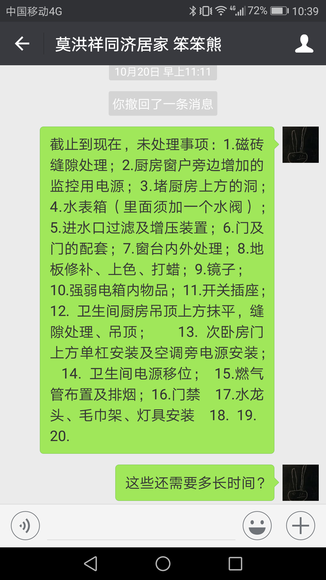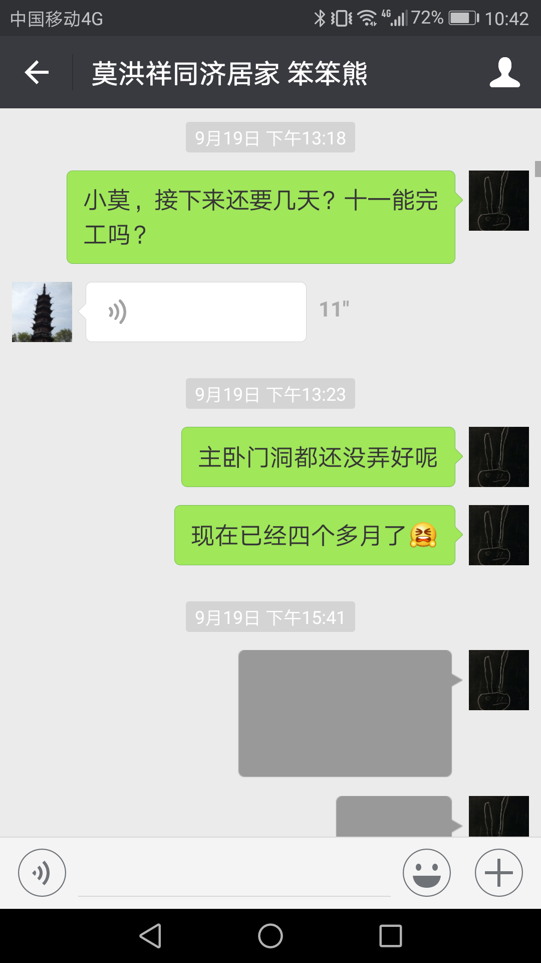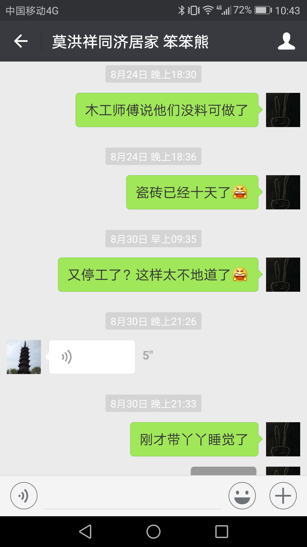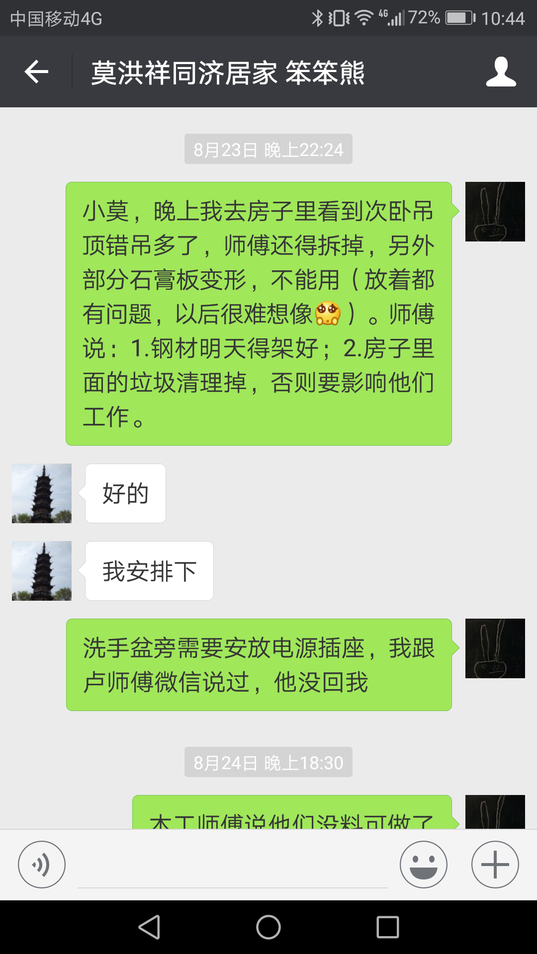 2017年5月14日簽訂裝修合同,合同約定裝修期為2017年5月18日至2017年8月18日,截止今日裝修還沒(méi)完成,且裝修期間,施工現(xiàn)場(chǎng)往樓下住戶家漏水六次,裝修公司從未出面跟業(yè)主及被漏水住戶道歉;裝修期間工人在現(xiàn)場(chǎng)施工共計(jì)不超過(guò)30天,裝修公司人員一直說(shuō)甲方現(xiàn)場(chǎng)沒(méi)多少活,可就是不見(jiàn)有人來(lái)做。