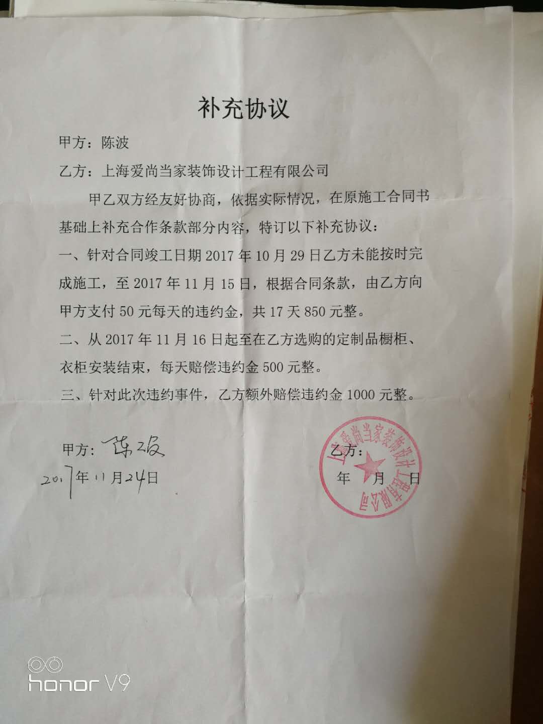 | 投訴類型 | 施工質(zhì)量 | 投訴人 | 陳** | 被投訴單位 | 上海愛尚當(dāng)家裝飾有限公司 |