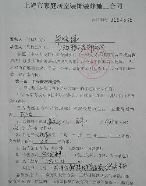 | 投訴類型 | 合同糾紛 | 投訴人 | 朱** | 被投訴單位 | 上海柏樂居裝潢裝飾有限公司嘉定分公司 |