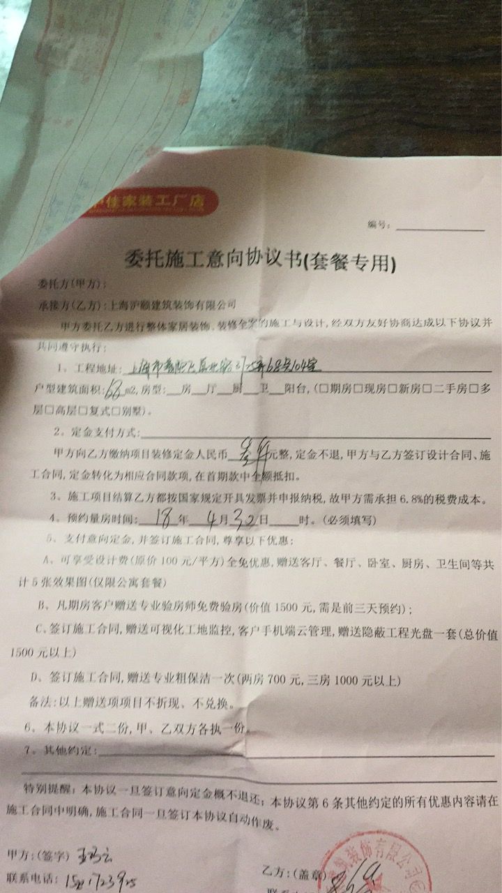 | 裝修面積 | 68m2 | 投訴人手機(jī) | 1520172**** | 被投訴人手機(jī) | 1580178**** |