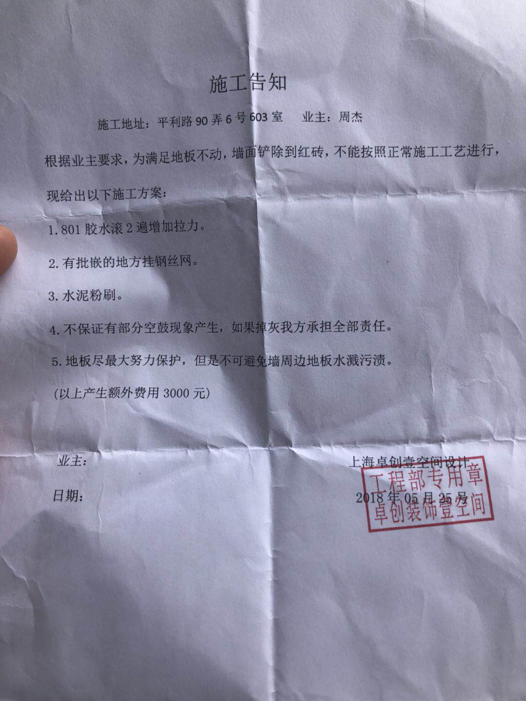 | 投訴類型 | 施工質(zhì)量 | 投訴人 | 周** | 被投訴單位 | 上海卓創(chuàng)裝飾設(shè)計(jì)有限公司 |