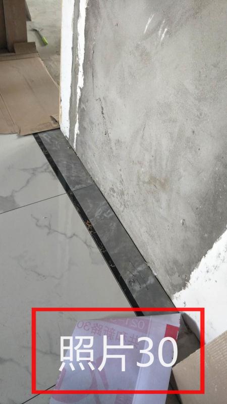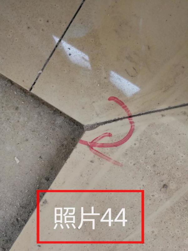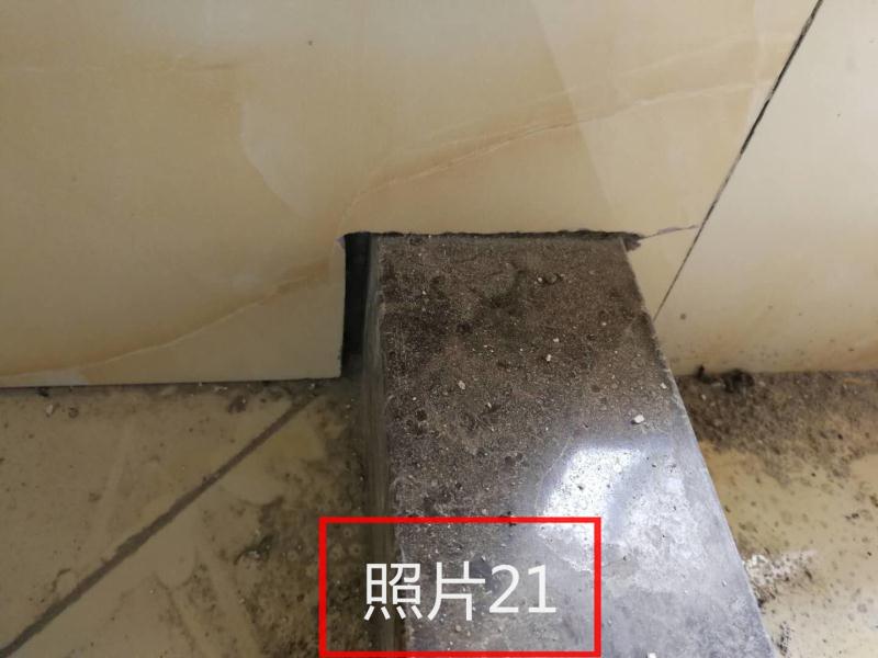 12.地磚鋪貼周邊不順直,磚面掉角、缺楞,留邊寬度不一致,不符合(本市3.15驗收標準)第7.2.1.1條“鑲貼應牢固,表面平整干凈,無漏貼錯貼;縫隙均勻,周邊順直,磚面無裂縫,掉角、缺楞等現(xiàn)象。留邊寬度應一致”的規(guī)定。(見附件照片43、照片44、照片45)