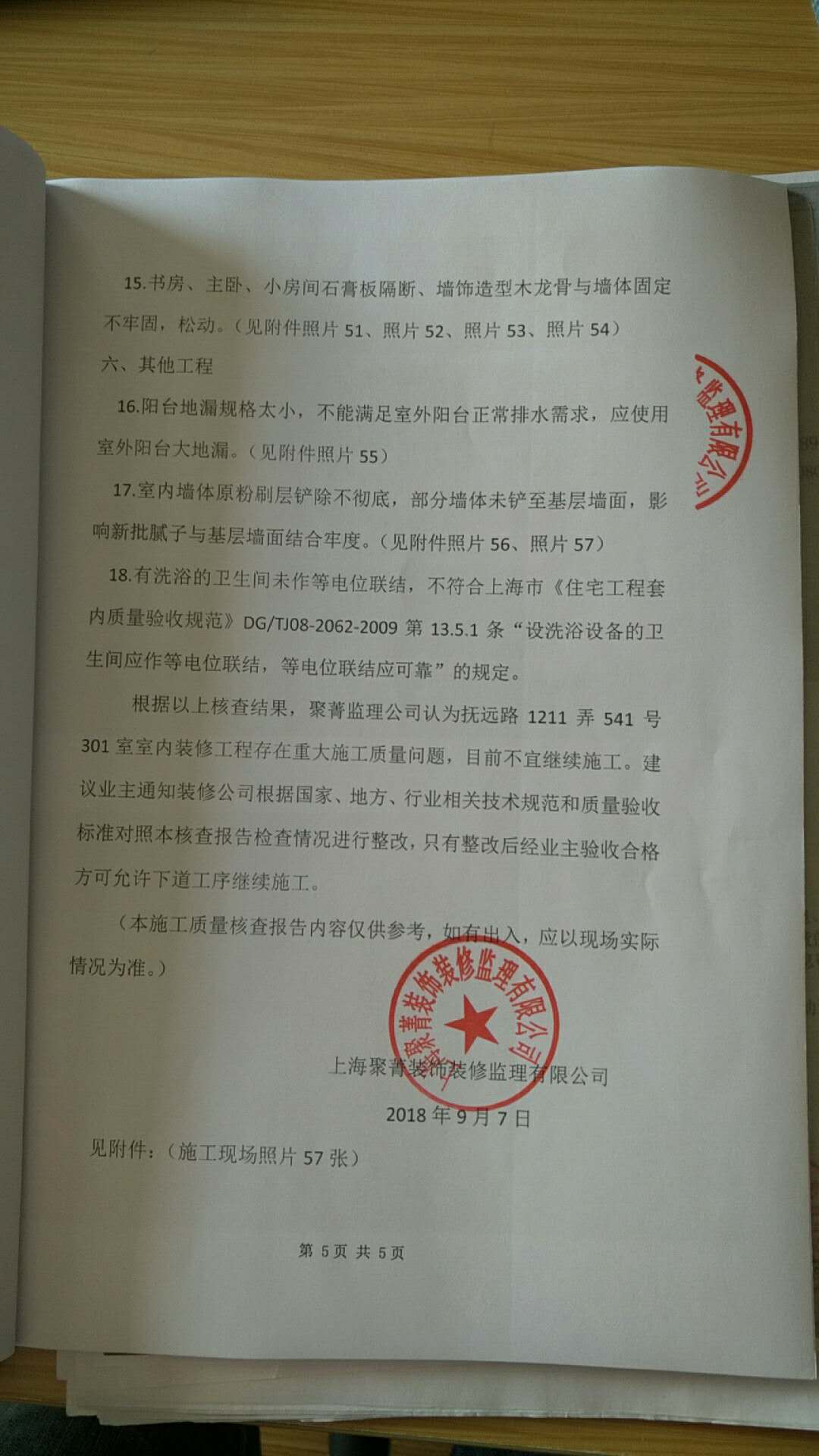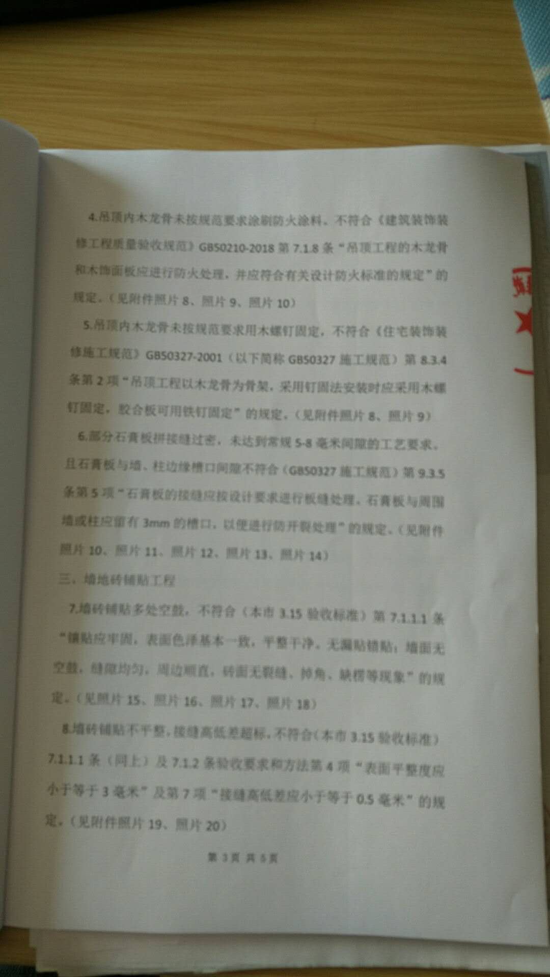 2018.9.7請第三方監(jiān)理公司來檢查,發(fā)現(xiàn)很多問題,還有好多不合行業(yè)裝修規(guī)定的照片還沒上傳上來