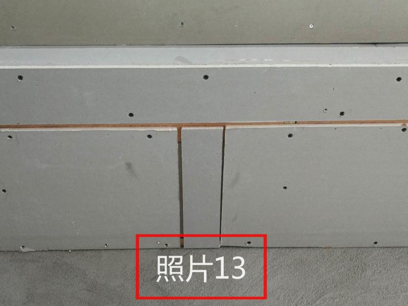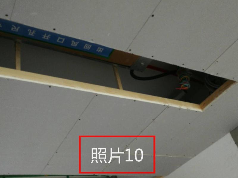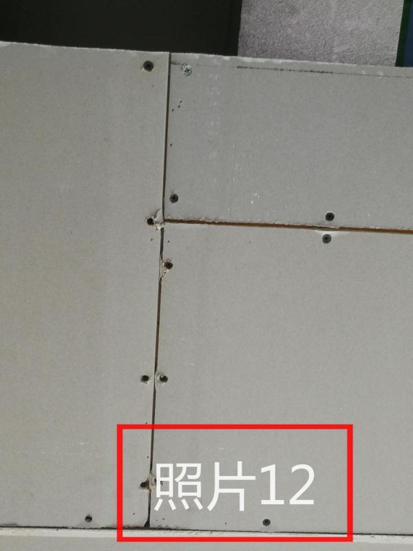 6.部分石膏板拼接縫過密,未達到常規(guī)5-8毫米間隙的工藝要求。且石膏板與墻、柱邊緣槽口間隙不符合(GB50327施工規(guī)范)第9.3.5條第5項“石膏板的接縫應按設計要求進行板縫處理。石膏板與周圍墻或柱應留有3mm的槽口,以便進行防開裂處理”的規(guī)定。(見附件照片10、照片11、照片12、照片13、照片14)