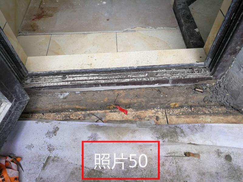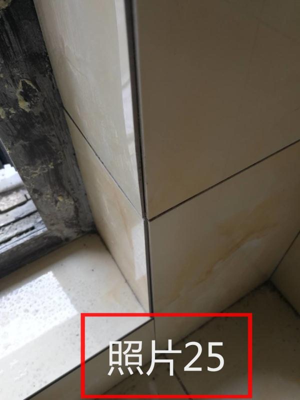 14.書房新砌墻體滲水,經(jīng)查系外露臺地面貼地磚,地坪被抬高,露臺地坪沿墻處未按規(guī)定做防水處理,造成外墻墻體滲水。(見附件照片48、照片49、照片50)