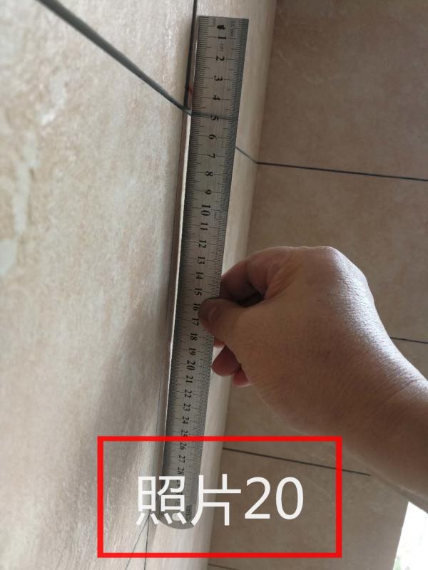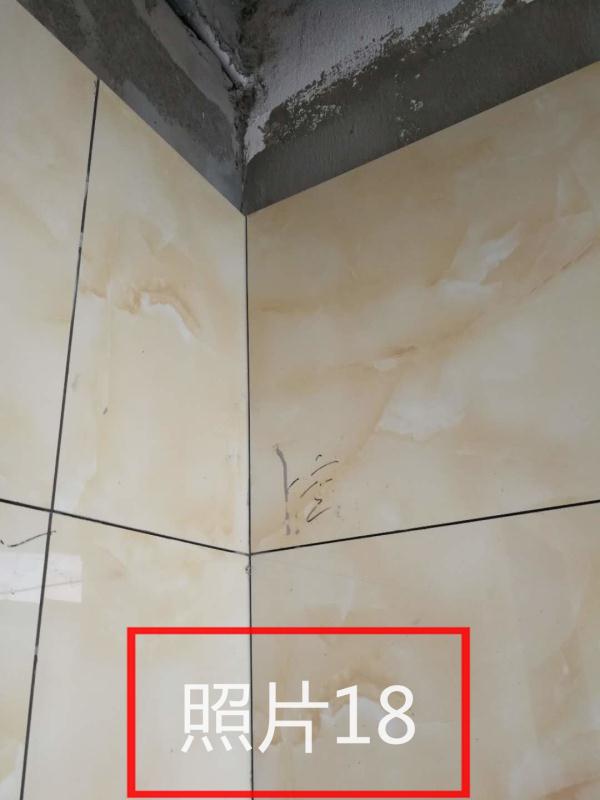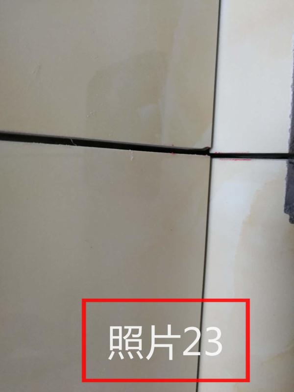 8.墻磚鋪貼不平整,接縫高低差超標,不符合(本市3.15驗收標準)7.1.1.1條(同上)及7.1.2條驗收要求和方法第4項“表面平整度應小于等于3毫米”及第7項“接縫高低差應小于等于0.5毫米”的規(guī)定。(見附件照片19、照片20)