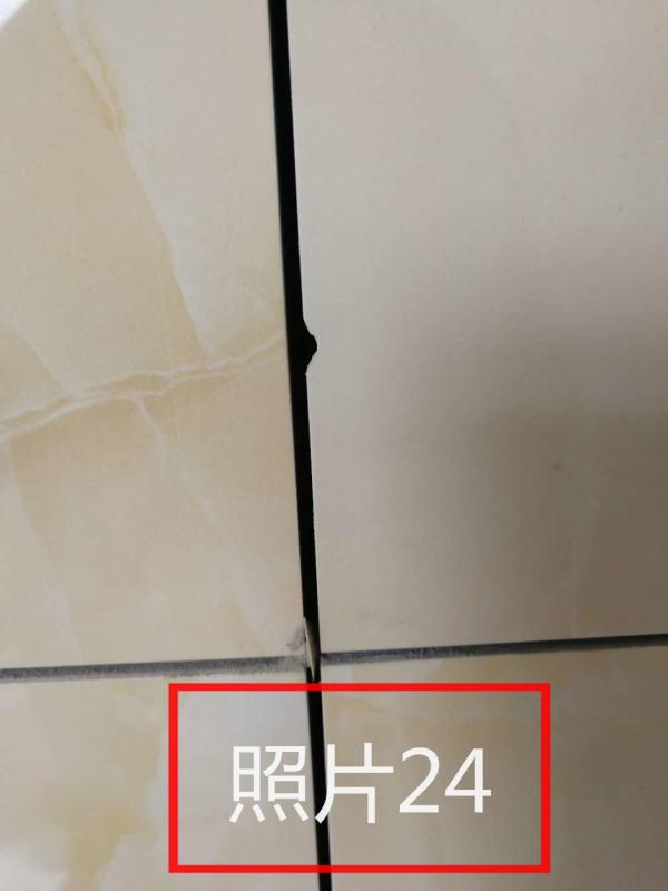 9.墻磚鋪貼縫隙不均勻,周邊不順直、掉角缺楞等,不符合(本市3.15驗收標準)第7.1.1.1條(同上)的規(guī)定。(見附件照片21、照片22、照片23、照片24、照片25、照片26)