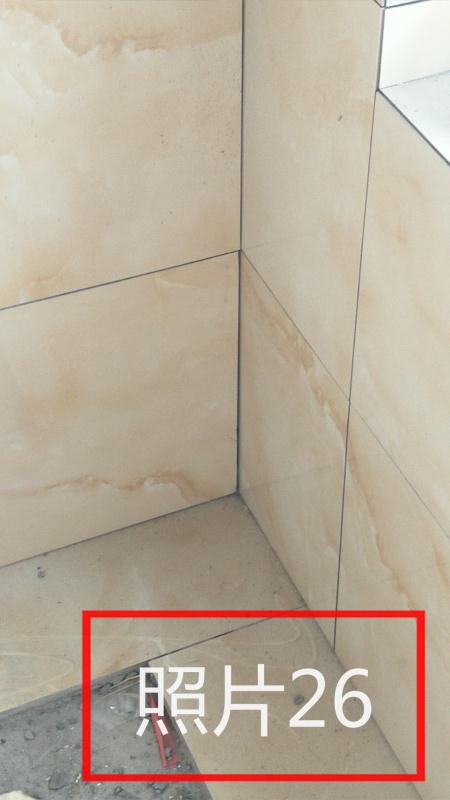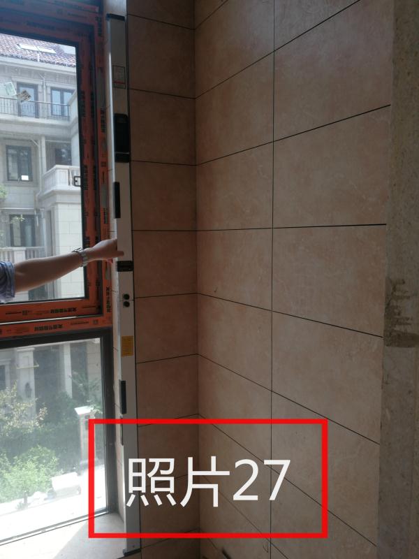 10.墻磚鋪貼不順直,立面垂直度超標,不符合(本市3.15驗收標準)第7.1.2條驗收要求和方法第5項“立面垂直度應小于等于2毫米”的規(guī)定。(見附件照片27、照片28)