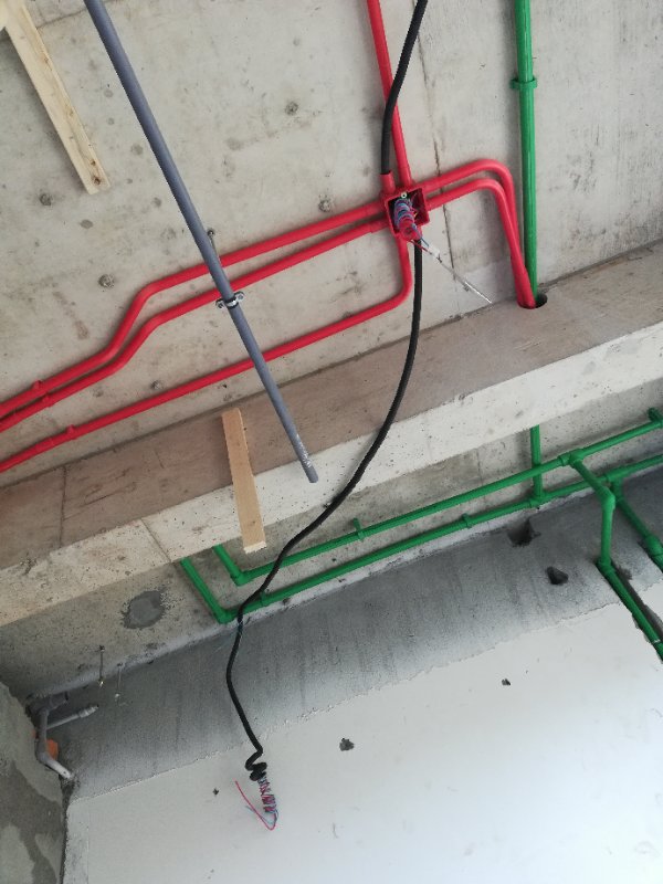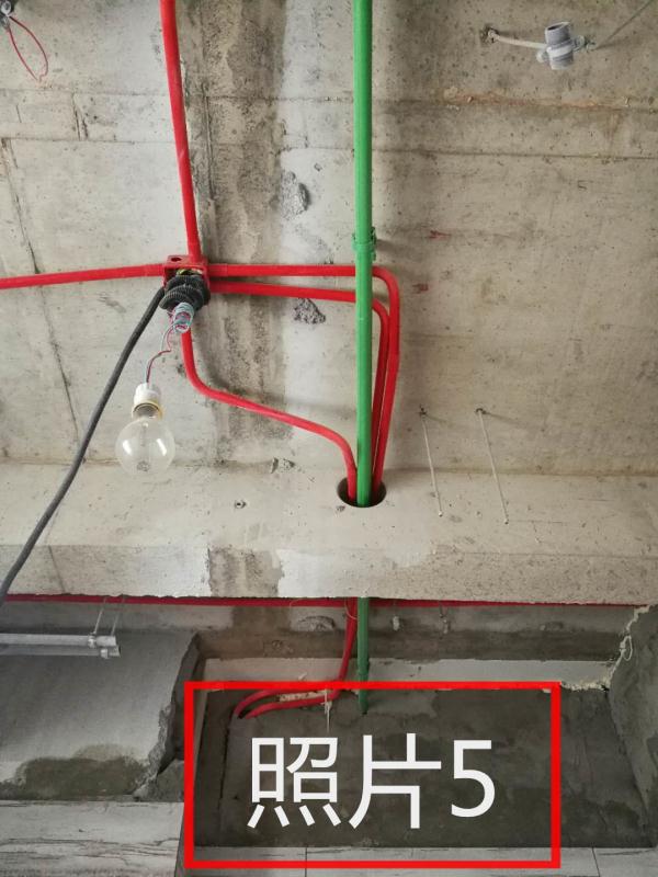 3.吊平頂內(nèi)水電管混裝,無安全間隔距離,不符合《上海市住宅裝飾裝修驗收標準》DB31/30-2003(以下簡稱本市3.15驗收標準)第5.1.11條“導線與燃氣管、水管同一平面間隔距離應大于等于100毫米,不同平面間隔距離應大于等于50毫米”的規(guī)定。(見附件照片3、照片4、照片5、照片6、照片7)
