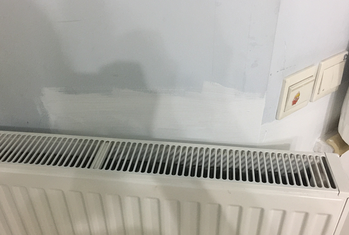 3、墻面翻新工程及其完成的及其粗糙,(1)有些地方打洞后只填補(bǔ)未上漆;(2)有些地方原來墻面為藍(lán)色,現(xiàn)在用了白色,還不找平。