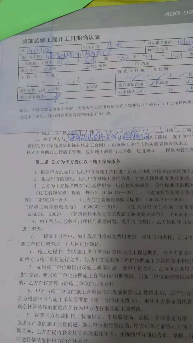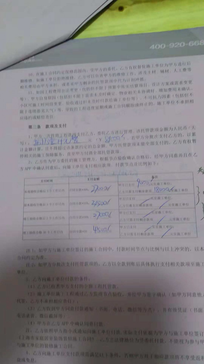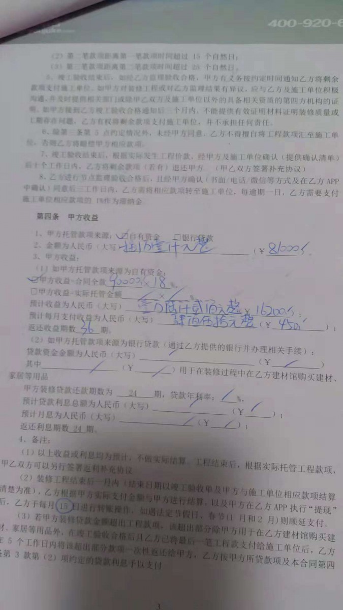 按照合同約定,在托管資金,總共分四個(gè)階段支付。裝修期截止至10月16日。