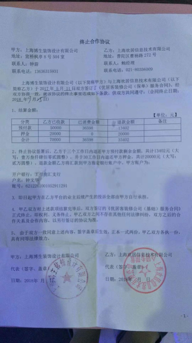 | 裝修面積 | 100m2 | 投訴人手機(jī) | 1363645**** | 被投訴人手機(jī) | 1381878**** |