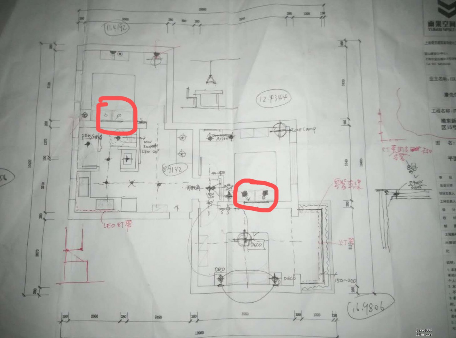 1. 兩個(gè)次臥臥室吊頂射燈未留點(diǎn)位,水電確認(rèn)時(shí)跟設(shè)計(jì)師有強(qiáng)調(diào),見下圖圖紙,但設(shè)計(jì)師否認(rèn)了當(dāng)時(shí)有這一設(shè)計(jì),還強(qiáng)調(diào)了當(dāng)時(shí)因?yàn)橹髋P要增加這個(gè)點(diǎn)位的問題跟包工頭大吵了一架,我表示完全不知道你們吵架這回兒事;