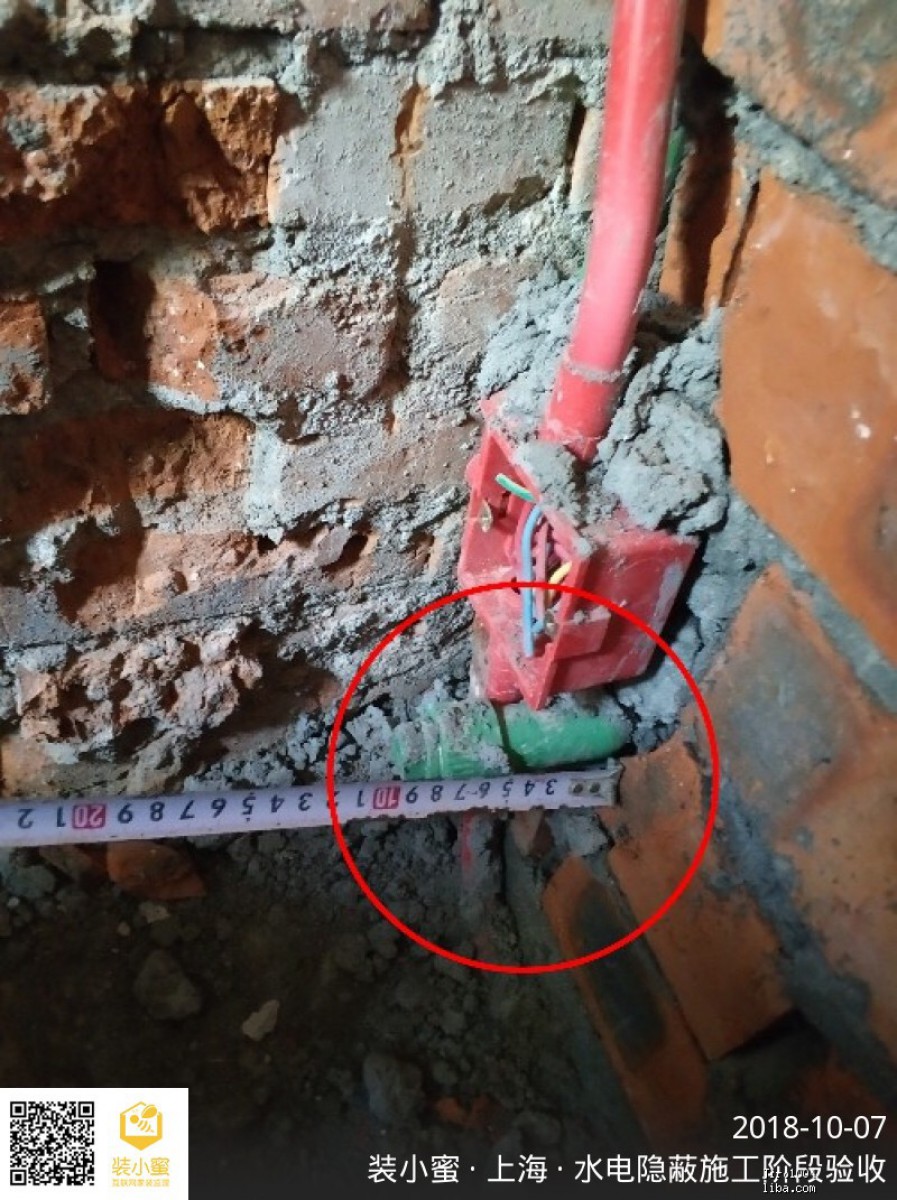 由于要砌新墻,再加上公司以國慶假期人員不好調(diào)配為理由,水電整改后的二次驗(yàn)收直接拖到了10.06,但是令人難以忍受的是,竟然放著第一次出現(xiàn)的原則問題仍然不整改,而是小改了幾個(gè)外表很容易看到的線管問題,送上二次水電驗(yàn)收現(xiàn)場(chǎng)圖。