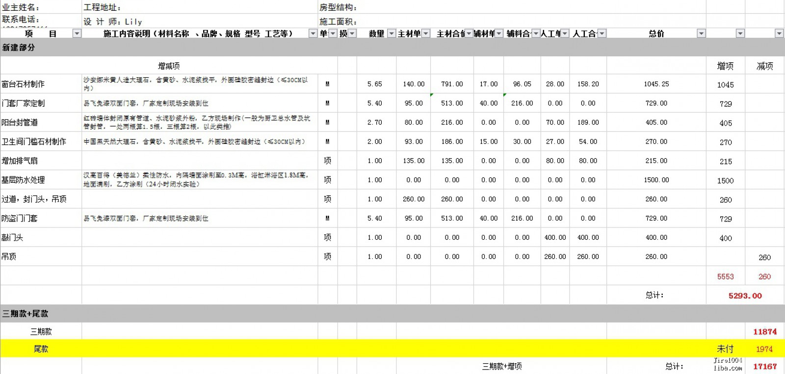 進(jìn)入12月,裝修公司跟我確定了墻漆、房門等原半包合同內(nèi)的項(xiàng)目后,基本處于沒什么溝通的處境。不過也理解,兩次撕破臉皮之后,彼此都心知肚明了,趕快完工一排兩散。但是可能我還是沒有這家裝修公司精明,一切的成本會(huì)在三期款的增減項(xiàng)里都給你“找補(bǔ)”回來的。