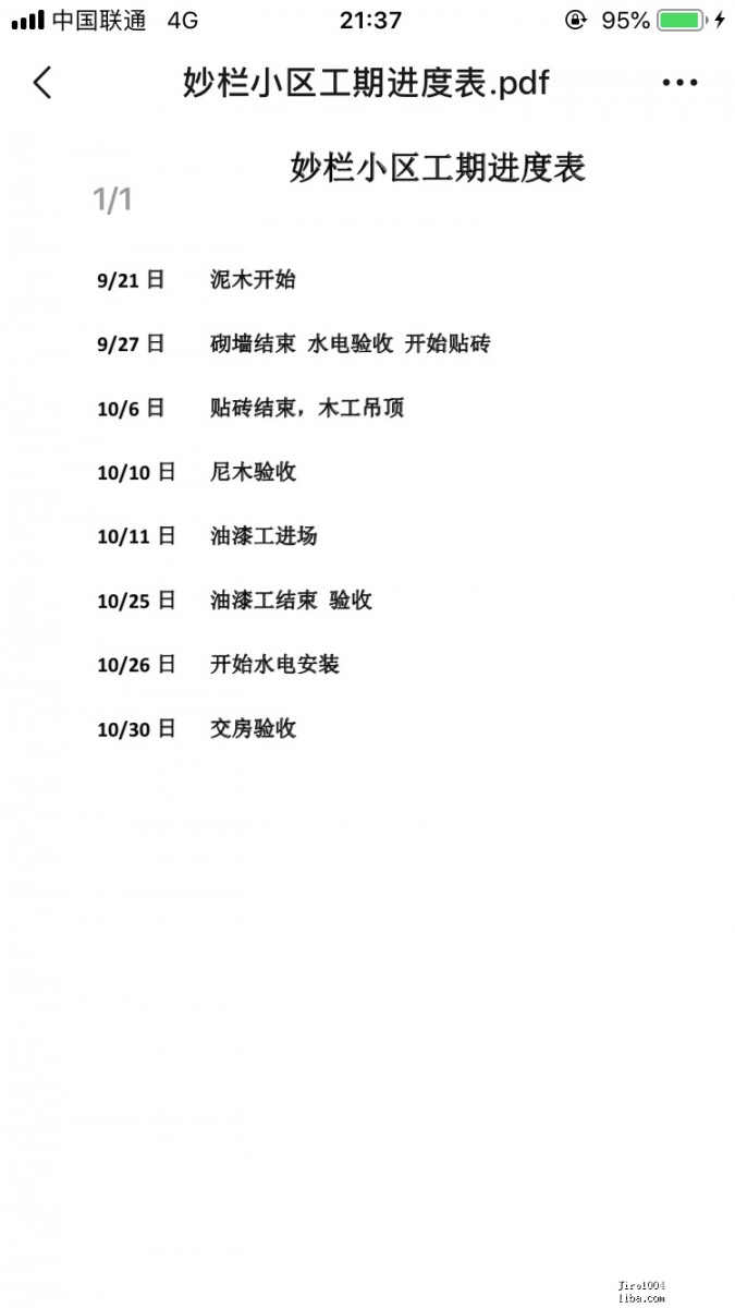 由于監(jiān)理的入場(chǎng)指導(dǎo),有了新的增項(xiàng)需要做,同時(shí)水電需要返工,工期務(wù)必拖延,再加上9.20此時(shí)我對(duì)設(shè)計(jì)師的進(jìn)度把控和工程質(zhì)量把控很不滿意,于是要求設(shè)計(jì)師起草了一份新的進(jìn)度表,制定出時(shí)間節(jié)點(diǎn),進(jìn)而希望完工時(shí)間不會(huì)太拖延,結(jié)果一切只是徒勞。分享一些跟裝修工人的溝通細(xì)節(jié),這個(gè)時(shí)候設(shè)計(jì)師完全不說話了,幾乎是我跟包工頭直接對(duì)話。這個(gè)包工頭有必要提一下,名義上是他們公司的現(xiàn)場(chǎng)監(jiān)理,其實(shí)只是調(diào)派人的包工頭,哪里的工程質(zhì)量出了問題負(fù)責(zé)協(xié)調(diào),配合度低到離譜,只會(huì)搗糨糊。你讓他把每天現(xiàn)場(chǎng)干的活拍個(gè)照片吧,想遠(yuǎn)程跟進(jìn)下現(xiàn)場(chǎng),這個(gè)事情是不會(huì)給你完成的。請(qǐng)參照下圖看看我“求”著看現(xiàn)場(chǎng)施工進(jìn)度的溝通記錄。這個(gè)問題我原以為只有自己遇到了,結(jié)果論壇內(nèi)好幾個(gè)用他家裝修的朋友都提到了相同的感受,看來真的不是我運(yùn)氣不好,而是選擇這家公司內(nèi)部的問題,別人家的情況我也會(huì)截圖po在文末一起曝光。關(guān)于尼木,當(dāng)然了,我是到了后面才知道,如果有要砌新墻,那么水電的排布和驗(yàn)收是要在砌墻之后進(jìn)行的,你可以想象水電驗(yàn)收的時(shí)候墻都沒砌好嗎?