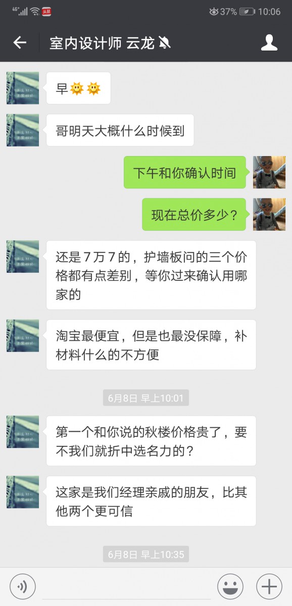 2:最初硅藻泥報(bào)價(jià)改為木飾面,價(jià)格上調(diào)。后協(xié)商木飾面改回硅藻泥,價(jià)格有增無減。