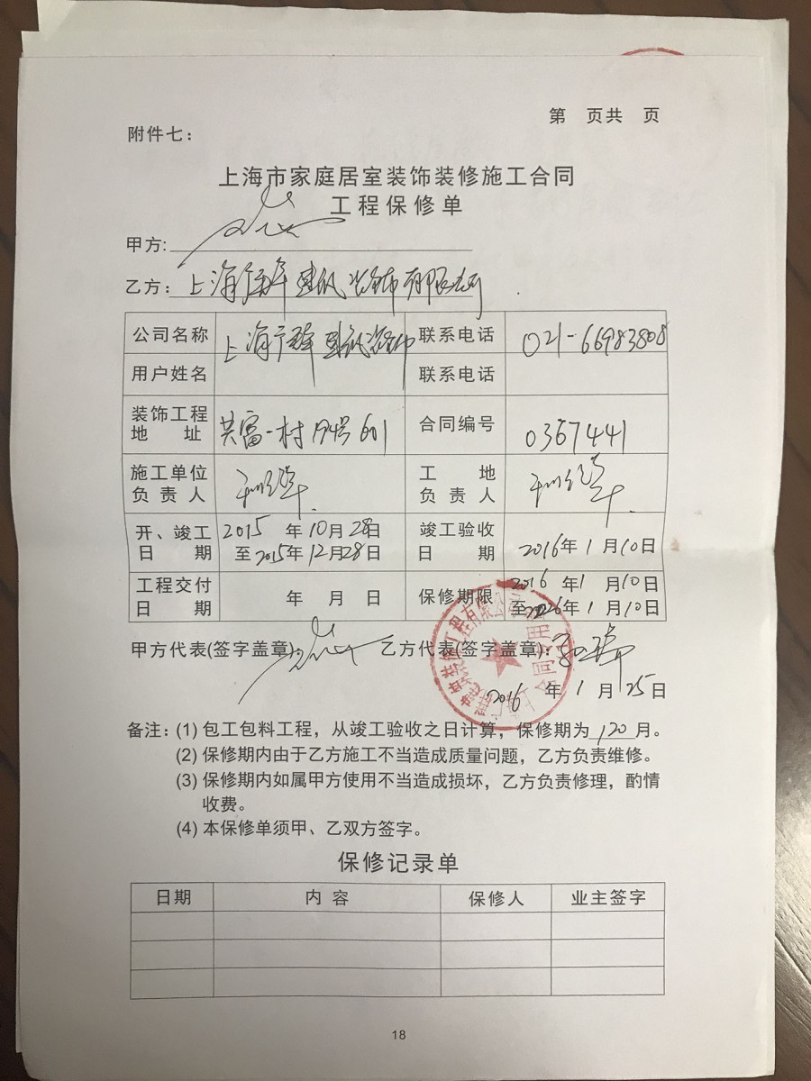 前提:2015年底與裝修公司簽訂了保修期為120個月的裝修合同,并蓋上了公章,2016年1月竣工,竣工后不久當初對接的該裝修公司設(shè)計師離職。