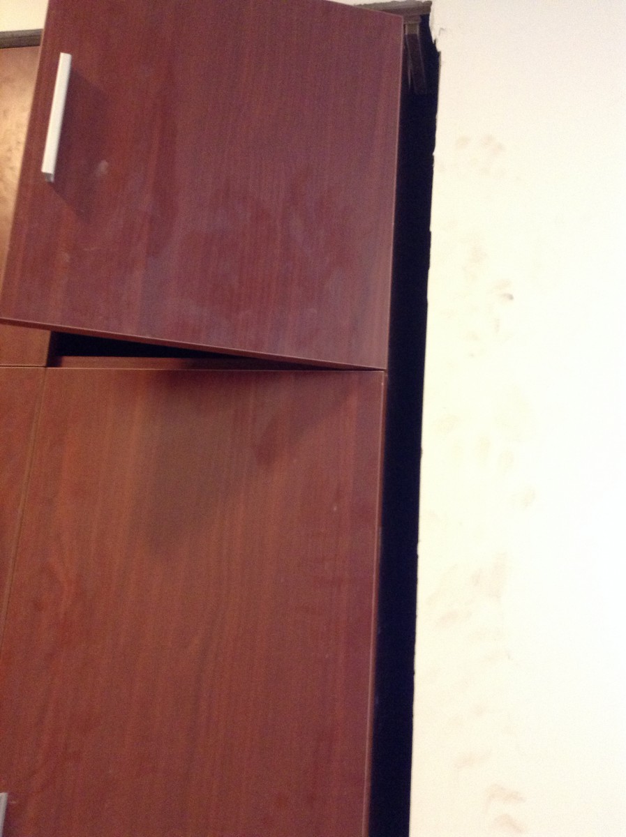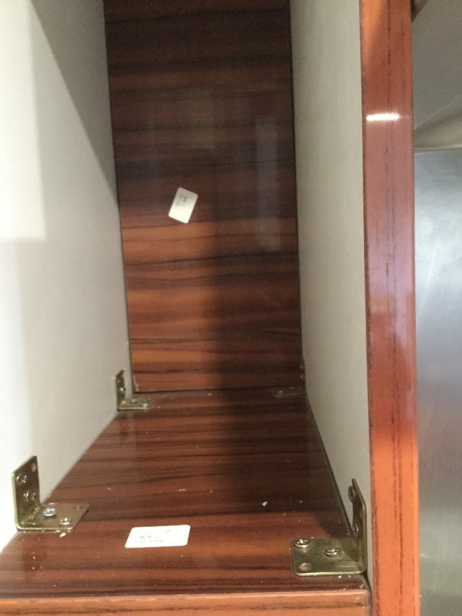 4 客衛(wèi)面板不匹配,不是蓋上去而是嵌進(jìn)去的,還挖很大一個窟窿  這種破板拼湊的柜體,以廚房下柜價格以米計