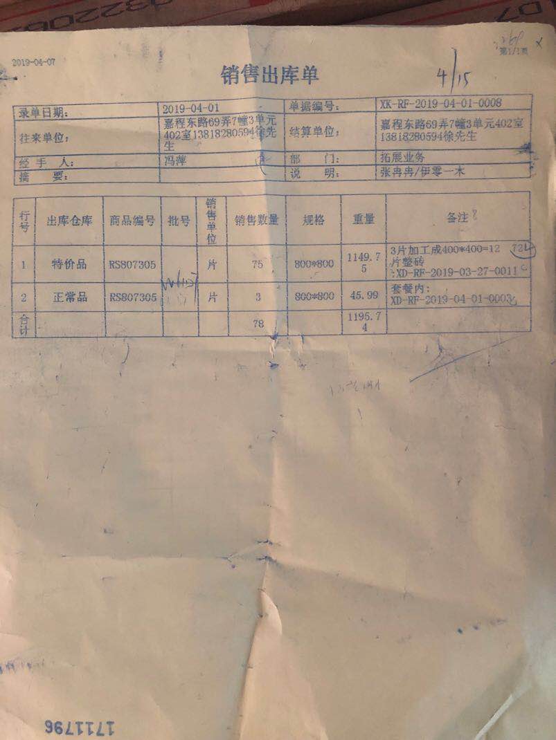 然而該公司施工隊長孔令社,于2019年4月15日,泥工師傅進場交底當日,方才告知我方,合同附件工程造價單中瓷磚鋪貼人工費用為45元/平米,該費用僅針對600 X 600及以下規(guī)格的瓷磚,我方鋪貼800 X 800的瓷磚,需要額外增加55元/平米的人工費用。當時,瓷磚供應商已經(jīng)按照我方施工需求,將所有瓷磚生產(chǎn)、切割、倒角完畢,且已送達我方施工現(xiàn)場(投訴依據(jù)6-7)。于我方而言,換磚,勢必要承擔瓷磚供應商的損失,并耽誤工期;不換磚,則該公司無理要求增加施工費用。最終,我方明確表示,按照合同與設計方案施工。