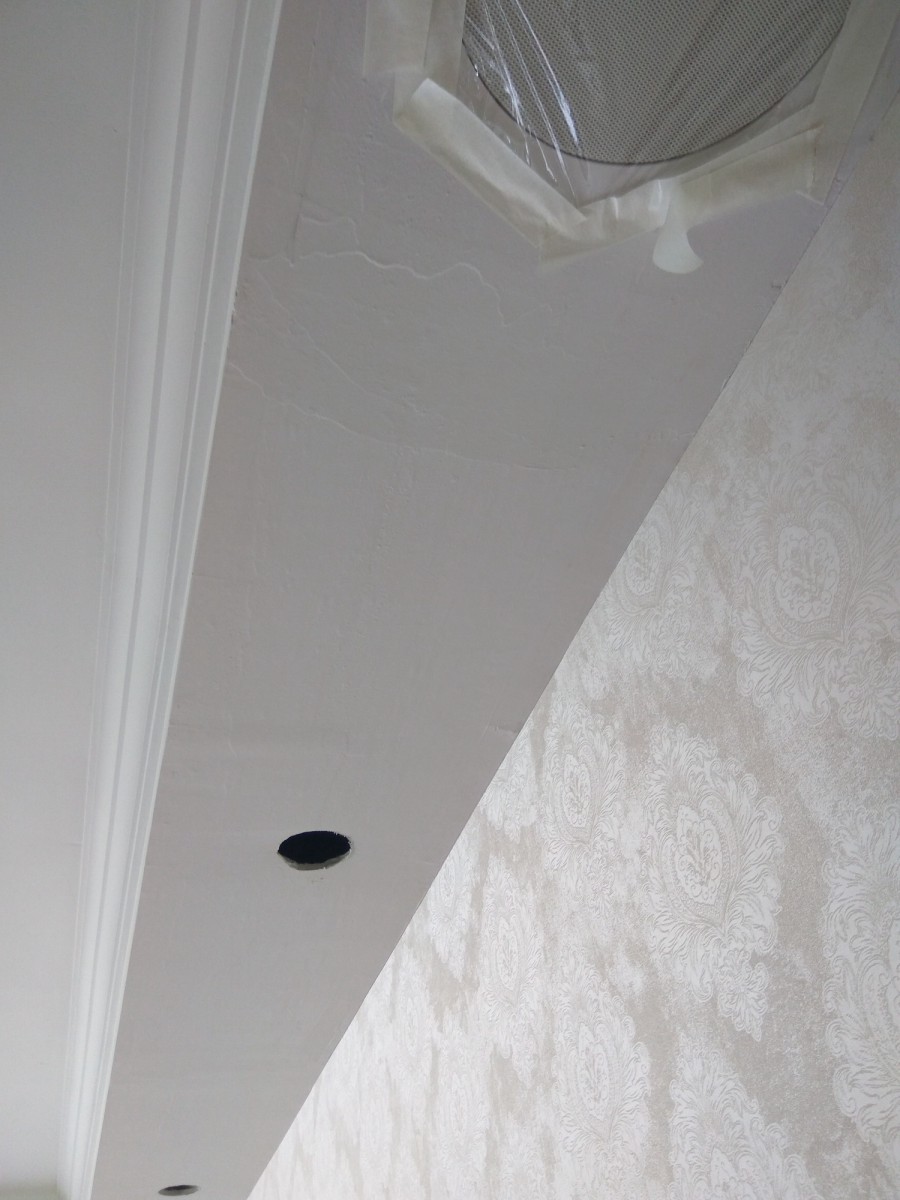 6.客廳頂面不平、吊頂部分沒有打磨及已開裂等問題。