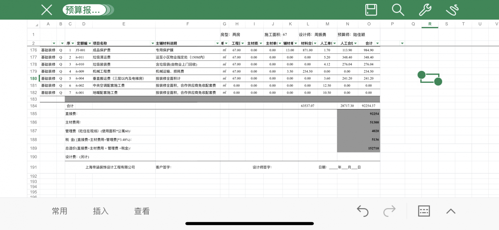 20190309簽訂合同,二房部分承包,施工面積67平。合同總價(jià)152710元,報(bào)價(jià)輔材及人工合計(jì)92254.37元,主材51300元?,F(xiàn)僅輔材及人工增項(xiàng)約1萬(wàn)8千余萬(wàn)。