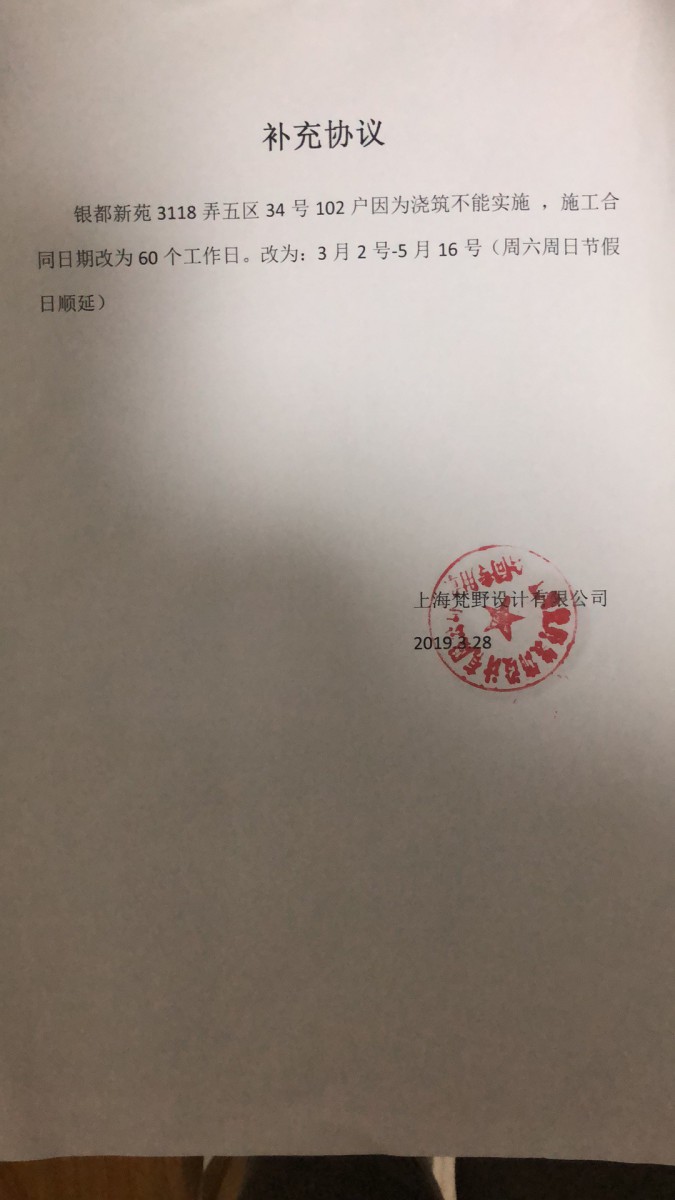 我家于2019年1月27日與梵野設(shè)計公司簽訂裝修合同,3月初5日開工,截止到今天5月30日家里裝修進(jìn)度還在第二遍批膩子;合同款項75000,過程中水電增項9800元(項目漏報,電線預(yù)算234米,報給業(yè)主469米,實際400米不到)泥木增項5000多(業(yè)主確認(rèn)幾次不吊頂,前隊長王先生直接把線留出來,最后不吊頂也要吊),接下來還有一些增項在增加;過程中進(jìn)度過慢,第一任隊長私自停工私自增加項目未經(jīng)業(yè)主確認(rèn),電線虛報等等現(xiàn)象,泥木階段業(yè)主付款與裝修公司均為輕鋼龍骨吊頂,做成木骨吊頂,裝修公司與隊長未與業(yè)主主動說明,是業(yè)主后面驗收通過付了款才發(fā)現(xiàn)此問題,裝修公司拖20天才解決;5月8號協(xié)商解決好,拆除相關(guān)吊頂與返工,5月8號至5月30號:22 天時間里只做吊頂返工和膩子工作,嚴(yán)重影響入住進(jìn)度;