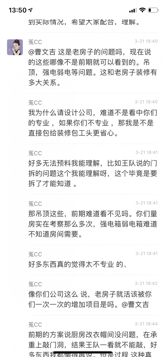 該設(shè)計公司一直出現(xiàn)溝通推諉、不及時處理與問題不解決事項,解決也是拖拖拉拉,反反復(fù)復(fù),解決上一個問題下一個新問題又繼續(xù)出現(xiàn);嚴(yán)重影響我家裝修進(jìn)度與入住的風(fēng)險和未能如期搬家的重大損失,同時過程中前隊長更是威脅我們的生命安全,我真實的在齊家網(wǎng)評論了我家裝修的情況 ,裝修公司讓我刪除評論我不刪除不解決問題,我只能來投訴維護(hù)自己的權(quán)益。