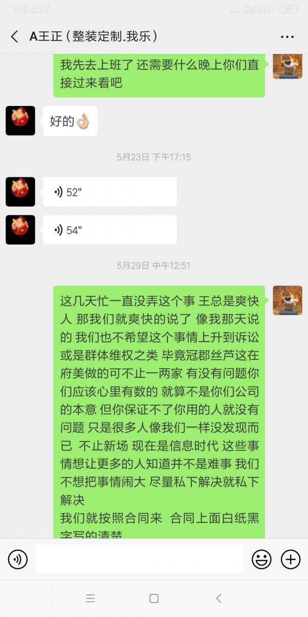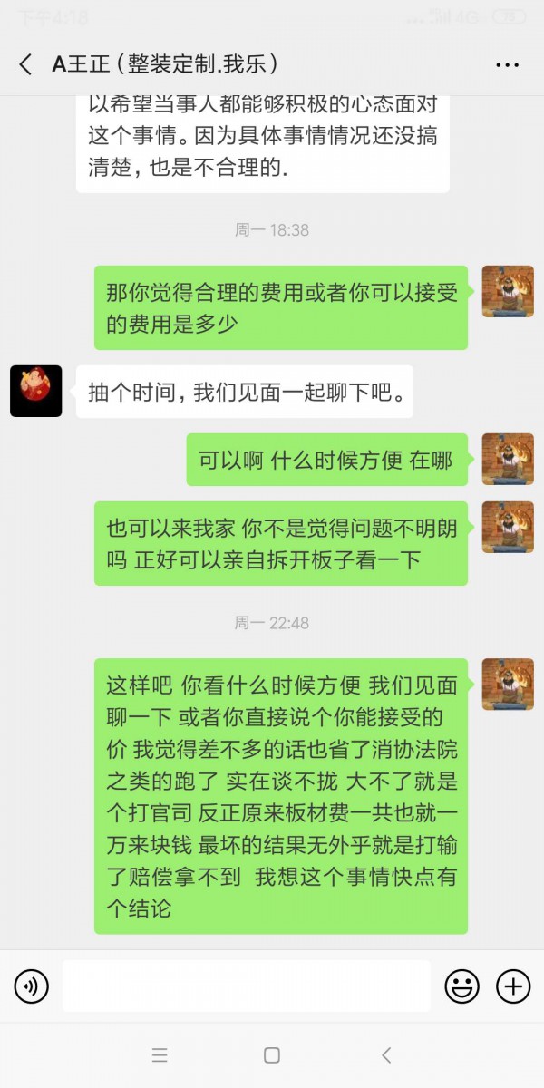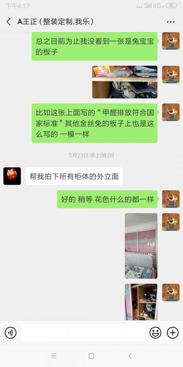 2019年5月20日,由于柜體封邊條日久脫落,原告看到了柜體實際所用板材橫斷面的商標(biāo)打印,遂發(fā)現(xiàn)柜體實際使用的板材并非當(dāng)初合同中約定的兔寶寶E0級生態(tài)板,而為其他不知名板材。原告遂多次提出協(xié)商,未果。