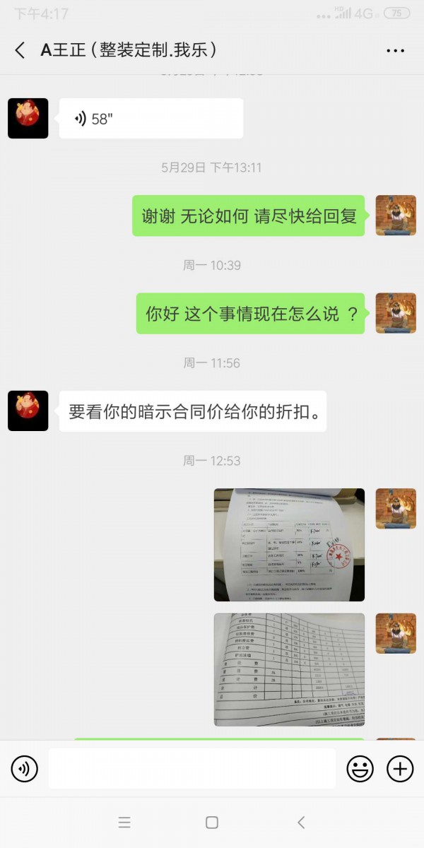 合同報價總價為64917元整,實際約定優(yōu)惠折扣后總價款58000元整。