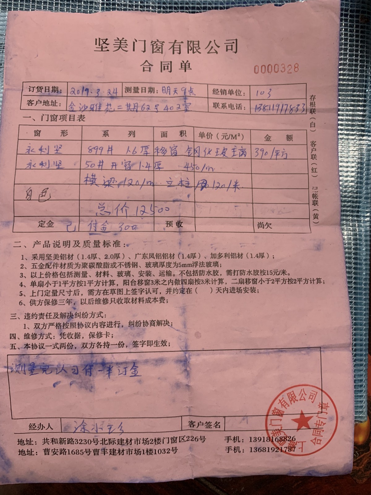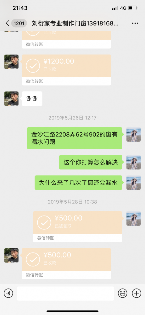 新裝窗戶發(fā)現(xiàn)嚴重漏水,堅美門窗公司派工人上門在外窗補打過2次膠,第二次補打后經(jīng)手人劉衍家保證不會再有漏水問題。最近梅雨季節(jié),又發(fā)現(xiàn)窗戶漏水,導(dǎo)致新刷乳膠漆變形起泡。
