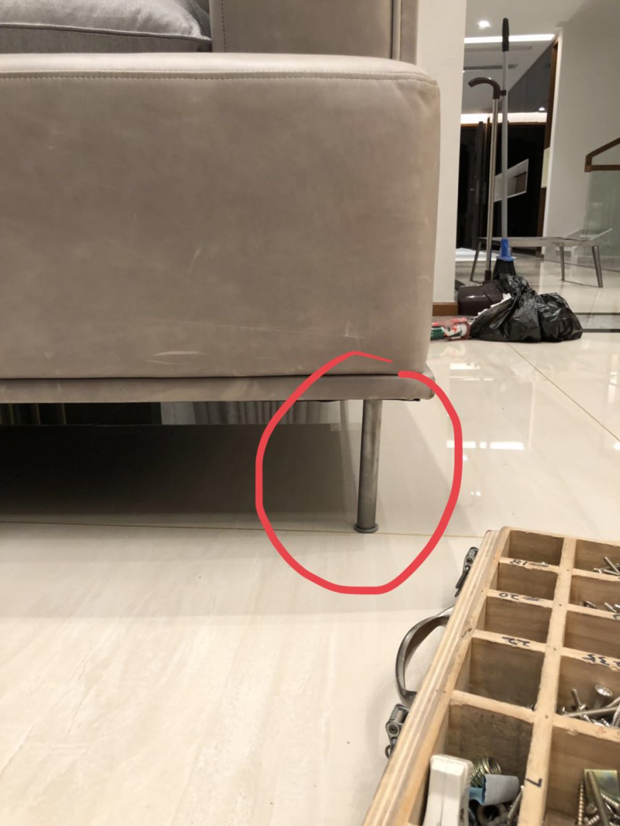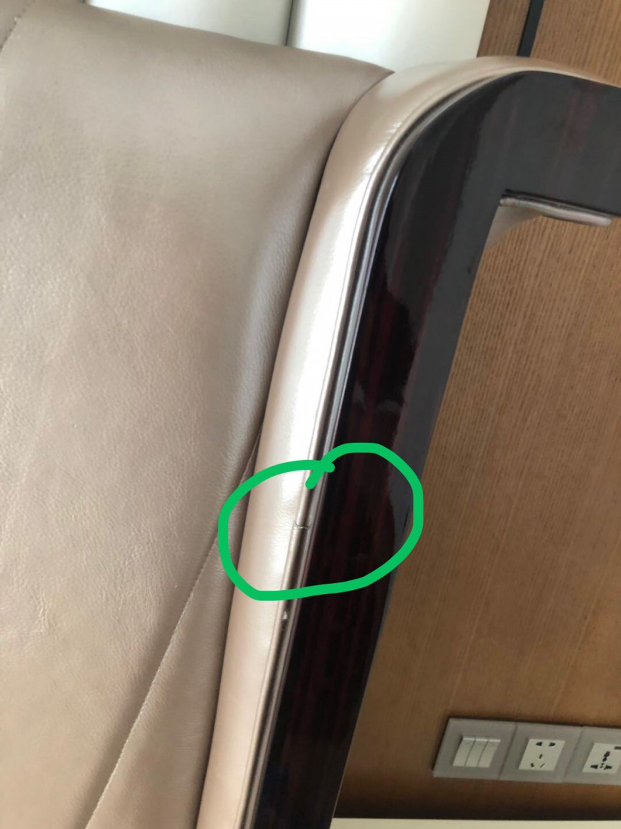 1. 以假充真,如真皮床頭靠背和真皮沙發(fā)并非真皮材質,且有多處破損。