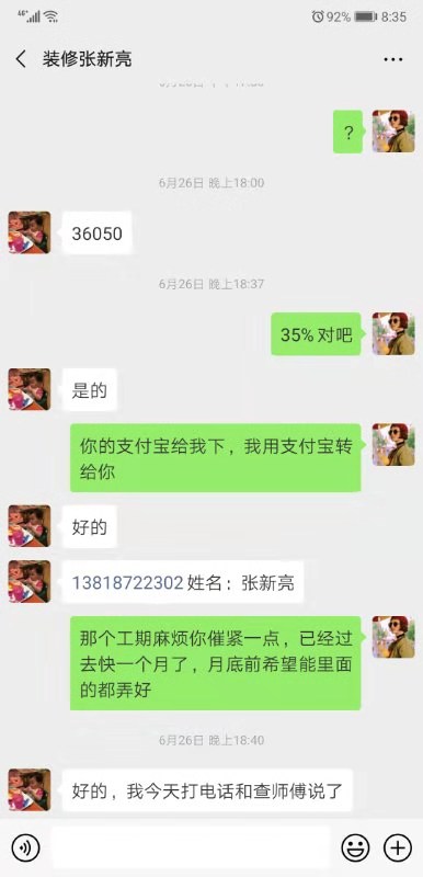 | 裝修面積 | 111m2 | 投訴人手機 | 1801866**** | 被投訴人手機 | 1505536**** |