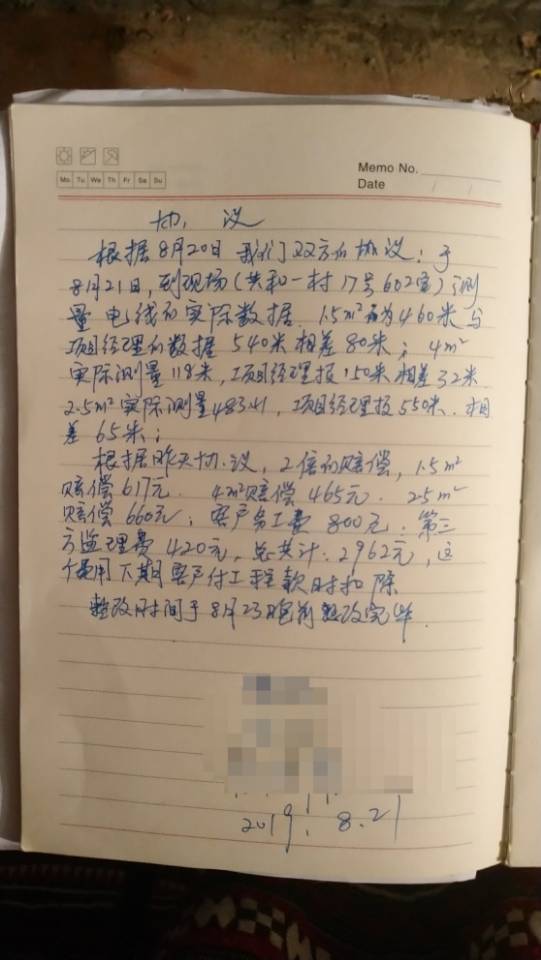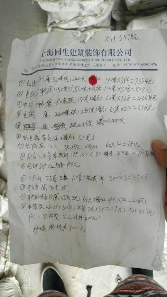 詳情如下:8月5日施工隊(duì)長(zhǎng)告知家中母親病危,需要回家?guī)滋欤@個(gè)情況我們自然表示非常理解,沒(méi)有多說(shuō)什么,讓隊(duì)長(zhǎng)盡管回家處理家事。18日隊(duì)長(zhǎng)返回上海重新開(kāi)工,這中間耽誤了兩周時(shí)間,我們并沒(méi)異議。但是,隊(duì)長(zhǎng)回來(lái)之后,給出一組電線使用數(shù)量的數(shù)據(jù)(附上圖片),數(shù)據(jù)與雨果空間的預(yù)算相差甚遠(yuǎn),足足多出350米,85平的房間,總共耗費(fèi)近1300米電線,我對(duì)此表示質(zhì)疑,后請(qǐng)公司監(jiān)理來(lái)現(xiàn)場(chǎng)測(cè)量電線數(shù)據(jù)。8月19日,公司監(jiān)理、施工隊(duì)長(zhǎng)、電工,我都在場(chǎng)的情況下進(jìn)行電線測(cè)量。測(cè)量后結(jié)果為900米左右(附圖片),與隊(duì)長(zhǎng)給出的數(shù)量足足差了一圈跑道!當(dāng)天與施工隊(duì)長(zhǎng)對(duì)質(zhì),結(jié)果隊(duì)長(zhǎng)直接不承認(rèn)此次測(cè)量結(jié)果,而且是公司監(jiān)理也在場(chǎng)的情況下的測(cè)量結(jié)果。然后就是我和隊(duì)長(zhǎng)在施工群里爭(zhēng)執(zhí)了一整晚,再加第二天的上午,期間工程經(jīng)理不予理睬,未給出解決方案,當(dāng)天在場(chǎng)的監(jiān)理的答復(fù)是如果覺(jué)得數(shù)據(jù)不對(duì)可以重新測(cè)量??!要重新測(cè)量??!真的是覺(jué)得我們客戶是被耍著玩的是么,真不知道監(jiān)理在現(xiàn)場(chǎng)是做什么用的? 爭(zhēng)論無(wú)果后,第二天直接去了公司期望找公司老板協(xié)商,同時(shí)通過(guò)此平臺(tái)進(jìn)行第一次投訴。最后通過(guò)賴在公司不走這種實(shí)在是無(wú)恥的方式(我也很無(wú)奈?。?,等了兩個(gè)小時(shí)才把工程經(jīng)理等到,然后就是現(xiàn)場(chǎng)再次協(xié)商,最后達(dá)成協(xié)議(附圖),經(jīng)理親自到現(xiàn)場(chǎng)監(jiān)督測(cè)量。