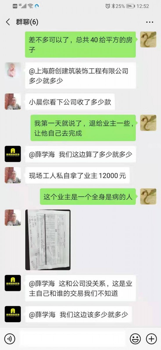 另外我是一個癌癥晚4期重病人,家人都在日本,我現(xiàn)每月八千借住原本想把老房子裝修干凈既可,在上?;熆床。蓻]想他們就是看到我這個老病女人一個我一退再讓可他們更是猖狂,至從裝修開始我整夜睡不好靠吃安眠藥,這幾天己加倍量,我目前在錢上自己買的花了一萬多,付給公司四萬多了,然后后工程只祘完成1/3,合同期15日就己過了,我現(xiàn)天天跑醫(yī)院要不希望能到你貴公司幫我救救我!