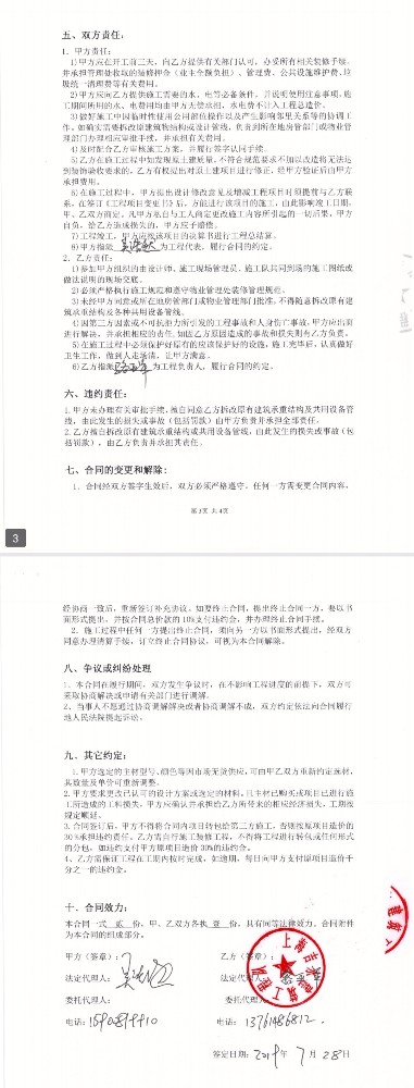 2019年7月29日現(xiàn)場(chǎng)開始施工,至今日(2019年10月29日)工程已逾期且超出約定竣工日近1個(gè)月,施工現(xiàn)場(chǎng)零零總總加起來近2個(gè)月無人施工,且瓷磚貼的參差不齊,地板異響,剩下房門,門套,踢腳線,柜門,鋁合金隔斷,水電收尾等其他工程沒有完工,目前我已支付7.36萬(前三期款項(xiàng),共80%工程款)給駱亞軍,并墊付0.4萬相關(guān)材料費(fèi)。負(fù)責(zé)人駱亞軍以各種理由推諉并拖延工期,從10月23日開始拒絕與我聯(lián)系,直到10月29日我才好不容易聯(lián)系上他,經(jīng)溝通我被要求需將工程款總金額增加到12.5萬(即總金額需要再增加3.3萬),對(duì)方才愿意進(jìn)行后面的工程,不然就不干。