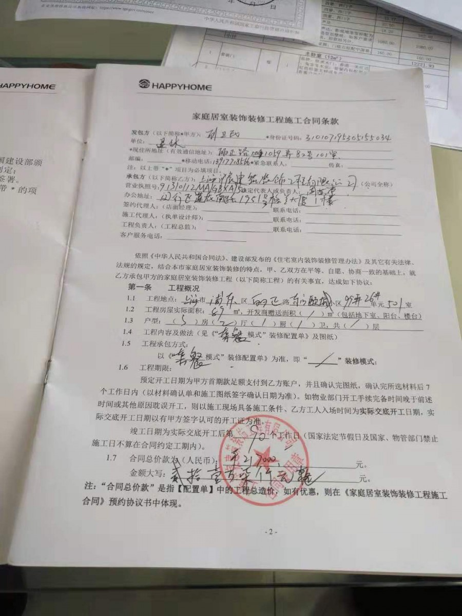 | 房型 | 兩房 | 聯(lián)系地址 | 浦東新區(qū)麗正路******** | 項目負(fù)責(zé)人 | 沈總 |