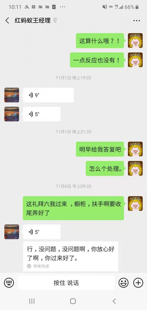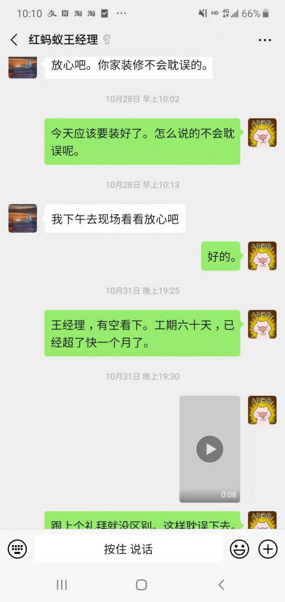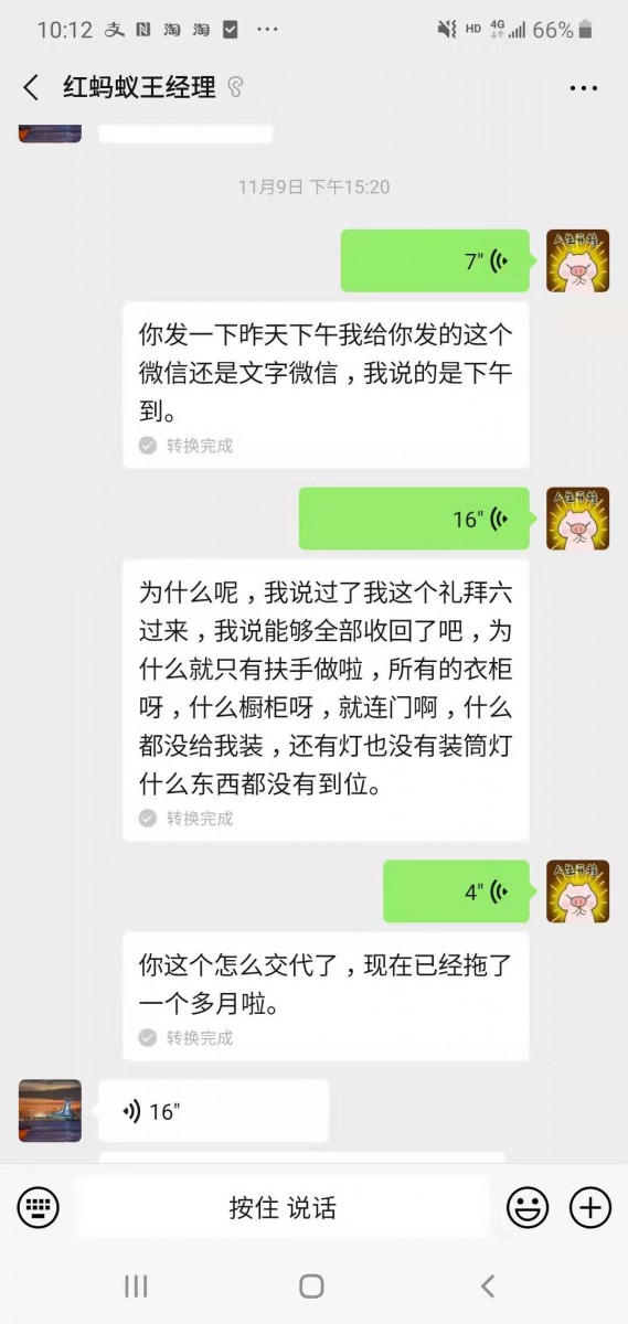 我要投訴上海紅螞蟻裝潢設(shè)計有限公司寧波分公司,該分公司行為惡劣。在完成第二工程后,沒有通知驗收且沒告知我第三筆款項給付,就開始了工程三?,F(xiàn)在我追究嚴重延期給我造成的損失時,竟倒打一耙說我不付第三筆工程款。在他催交第三筆工程款時,我已明確告知我會給付,但要先彌補對我實際造成的損失,該損失遠高于合同上寫得50元一天的約定(本身簽定合同時,已明確是否來得及,我本著不是要他們賠的初衷,他們也明確表示這么小的公寓肯定來得及,想不到當初的信任被這樣對待)目前,已嚴重影響我的生活,且他們不溝通,且大言不慚的說,要讓我一分不少付第三筆款項,否則不裝(不裝的實際是他們定制的東西還未制作好,想以此來威脅我)。我如果付好這筆款項,最后一筆是驗收通過后的3000元,遠不能保證我的利益?,F(xiàn)在他們既無理耽誤工期,也不溝通,非常不負責任和蠻橫。我覺得扣除我的實際損失后把余下款項給予是合情合理的。望貴平臺,給予支持。